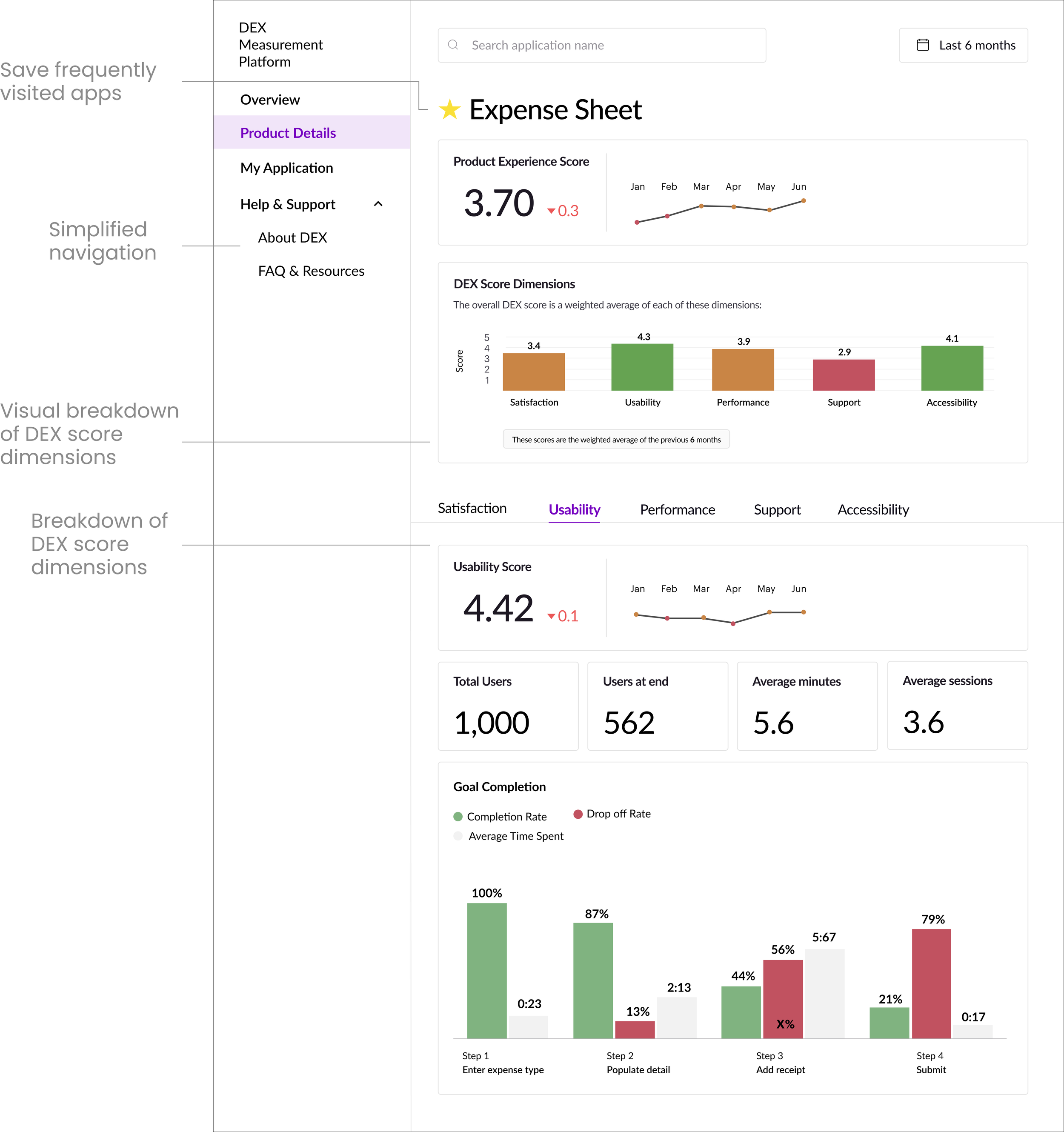 The goal of the DEX platform is to boost employee productivity, engagement, and overall workforce performance by ensuring that the digital tools employees rely on are optimized for ease of use, efficiency, and support.